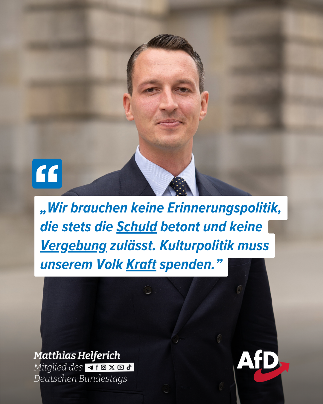 „Wir brauchen keine Erinnerungspolitik, die stets die Schuld betont und keine Vergebung zulässt. Kulturpolitik muss unserem Volk Kraft spenden.”