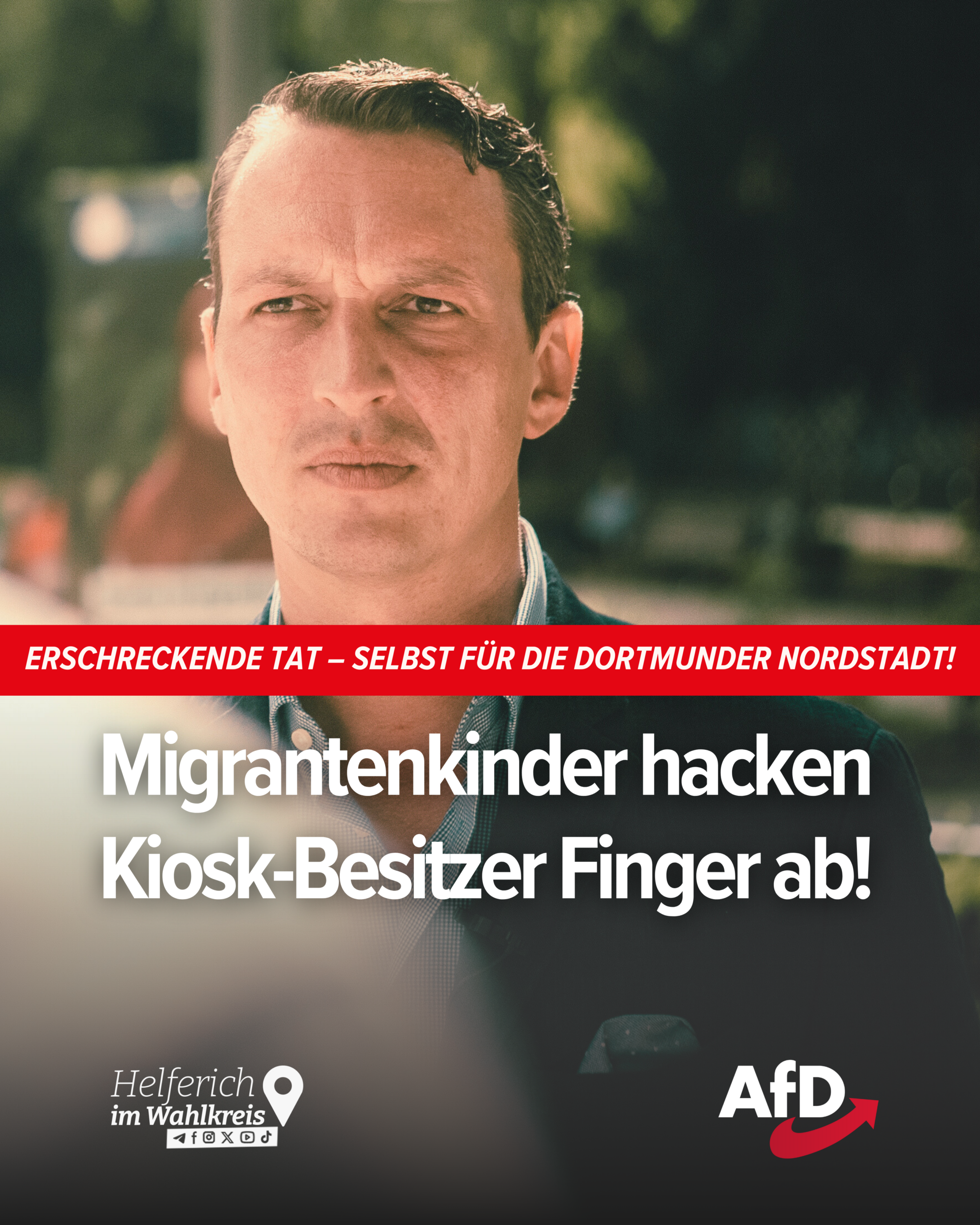 Mit ungeheurer Brutalität überfielen kürzlich zwei 13-Jährige einen 37-Jährigen Kiosk-Besitzer in der Dortmunder Nordstadt. Die aus Syrien und Bulgarien stammenden Täter attackierten ihr Opfer mit Pfefferspray und schlugen anschließend mit einer Machete auf dessen Kopf ein. Bei diesen Hieben trennten sie dem Mann einen Daumen ab und fügten ihm weitere schwere Schnittverletzungen zu. Die Mordkommission ermittelt, doch sind die Täter wegen ihrer Strafunmündigkeit geschützt.